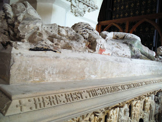 When he died in Carmarthen in February 1525 he was buried in the Fransiscan Greyfriars priory where he spent his last days. After the dissolution of the monasteries his tomb was taken to nearby St. Peter's Church, Carmarthen, where I visited it for my research.